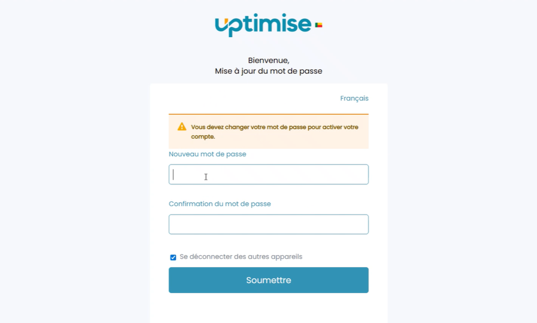 Étape 3 — Créer votre mot de passeVous êtes maintenant invité(e) à définir votre mot de passe. Ce mot de passe servira à vous connecter à Uptimise.