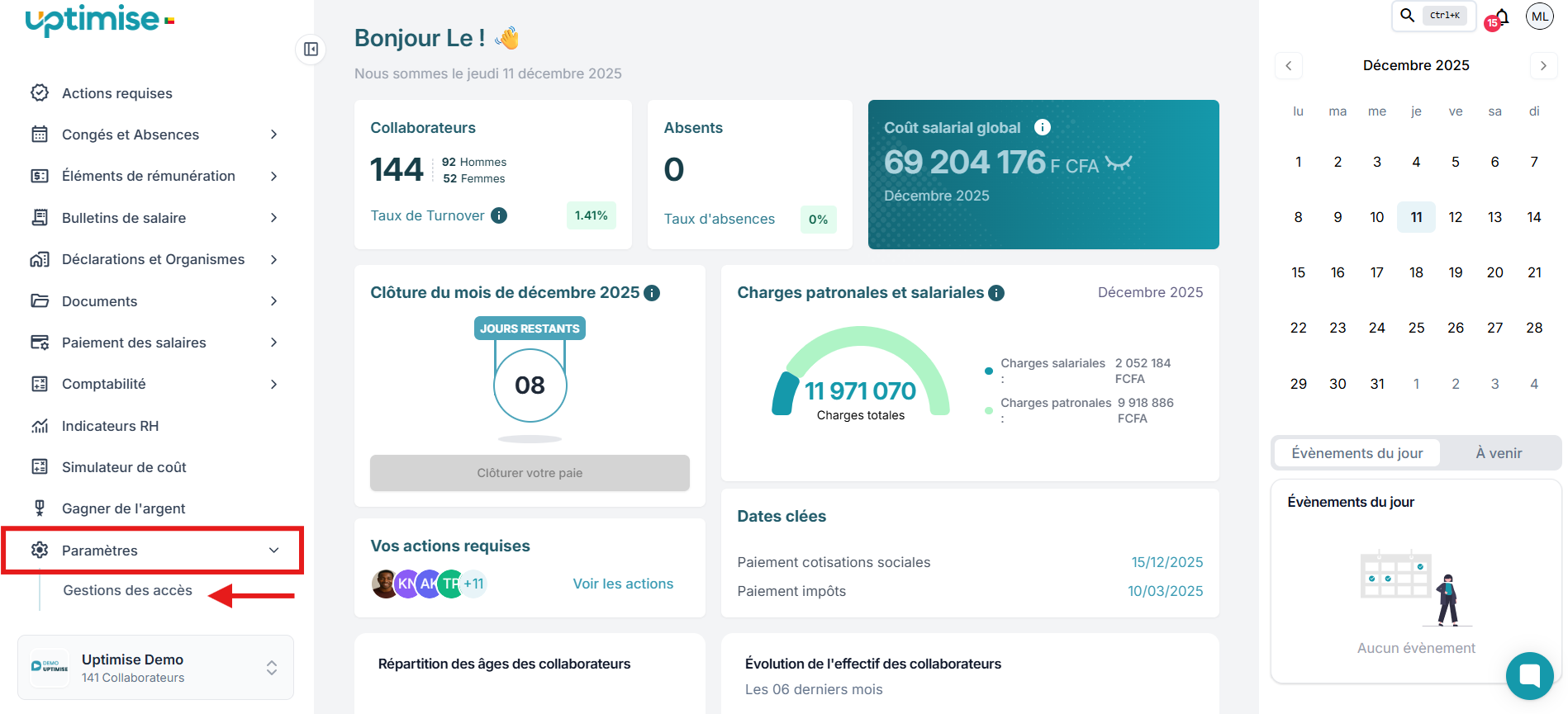 3. Dans le menu qui s'affiche, sélectionnez "Gestion des accès".