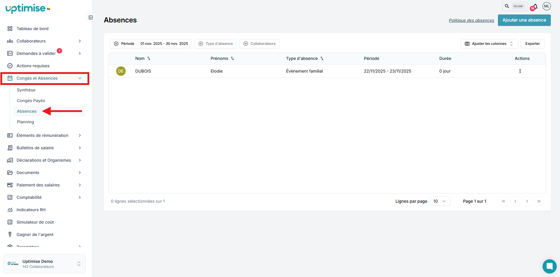 A votre gauche, rendez-vous dans l'onglet "Congés & Absences".