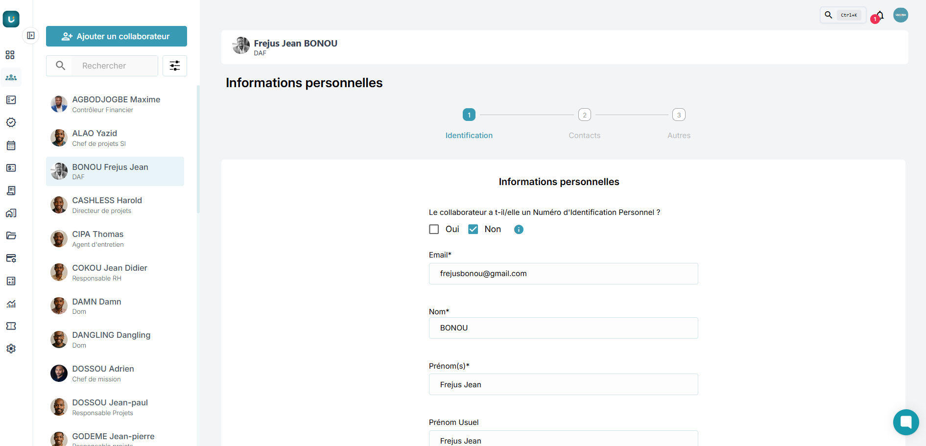 1. Informations du collaborateur