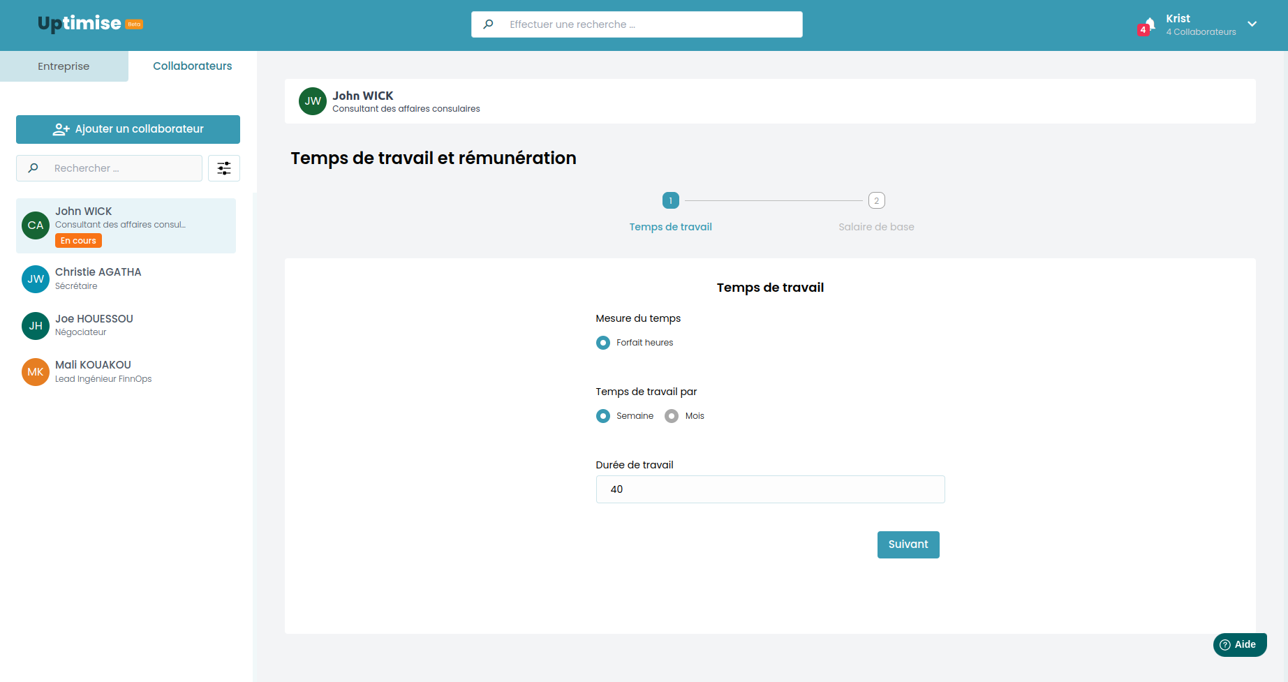 Ici, vous définissez le salaire de base de votre collaborateur.