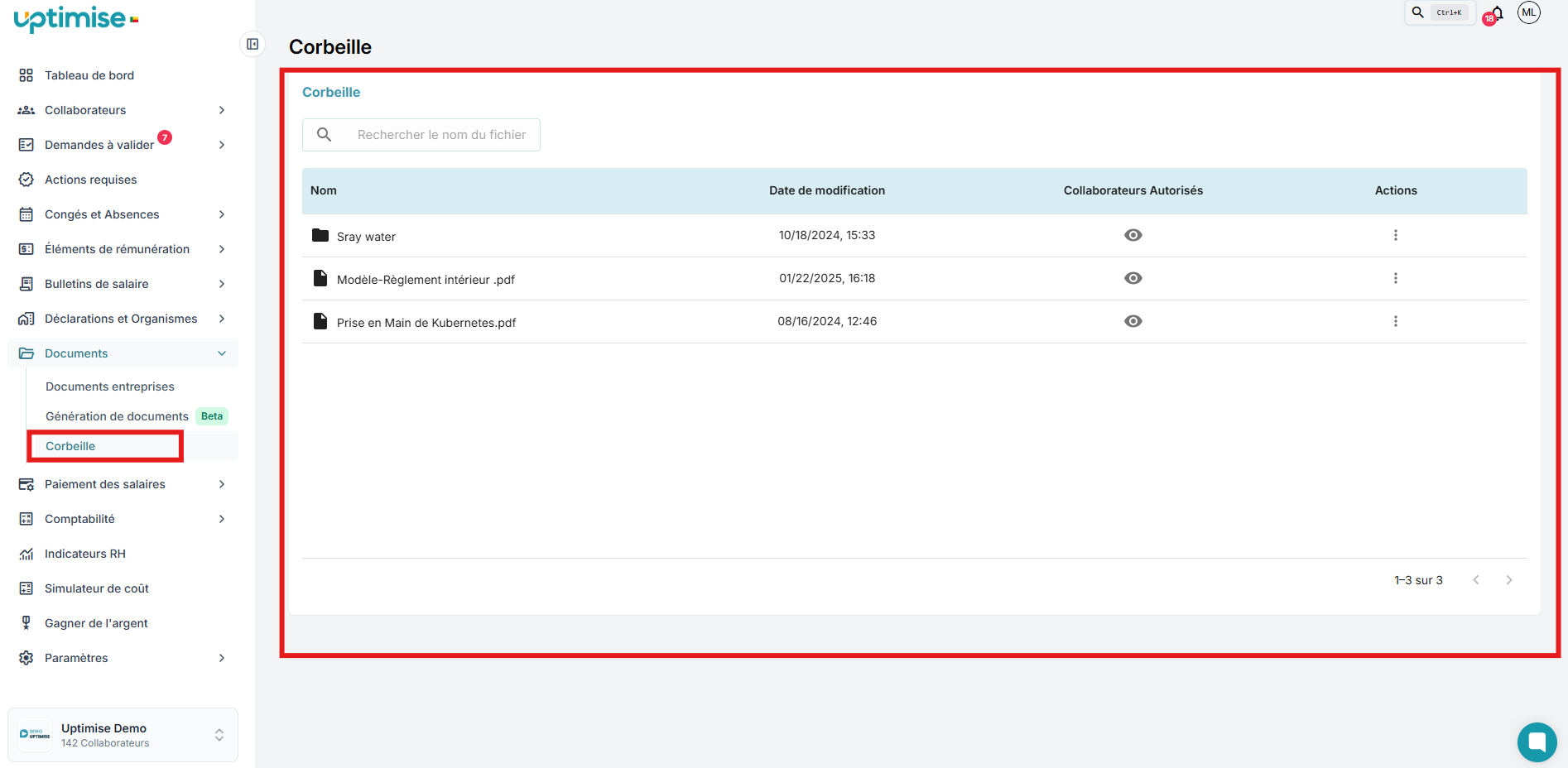 Cet espace document vous permet de gérer efficacement les documents et dossiers sur la plateforme Uptimise, que ce soit pour ajouter de nouveaux fichiers, organiser vos données ou récupérer des éléments supprimés.