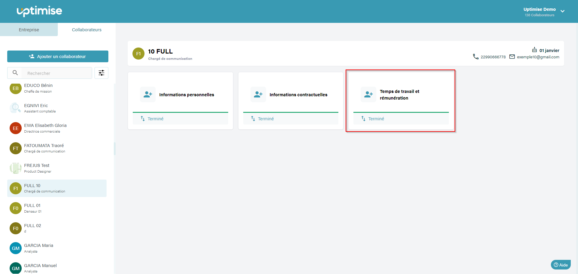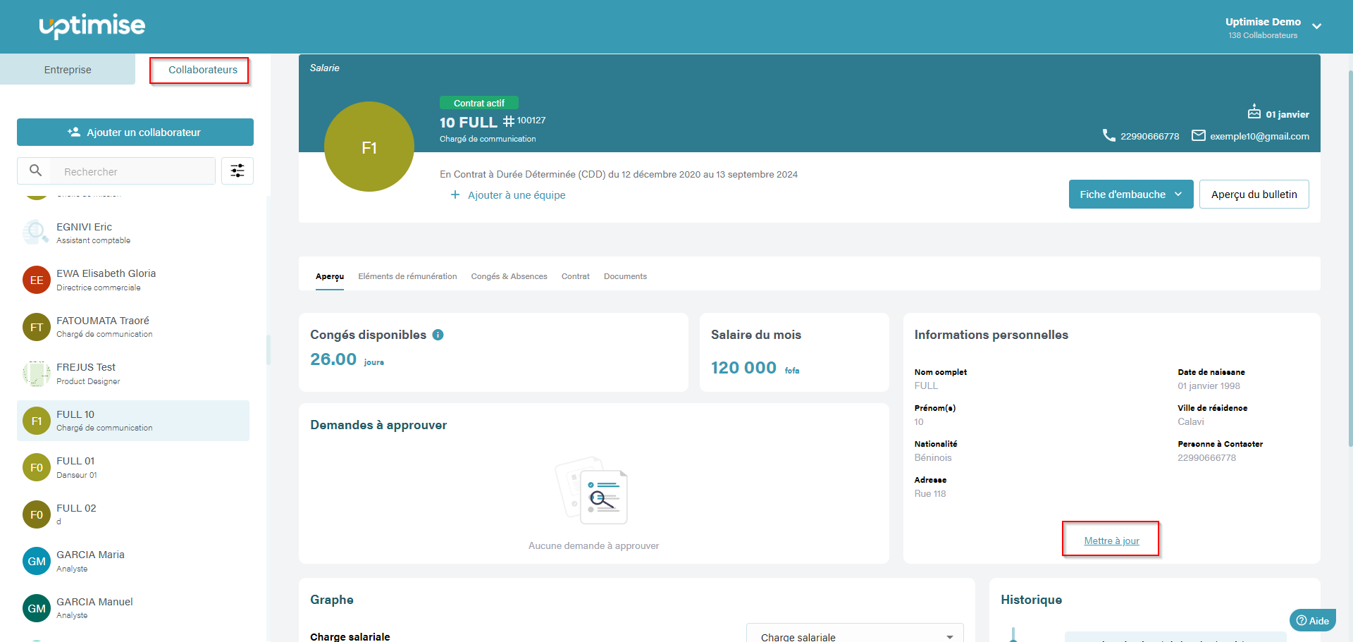 - Dans le profil du collaborateur, cliquez sur la section "Informations personnelles".