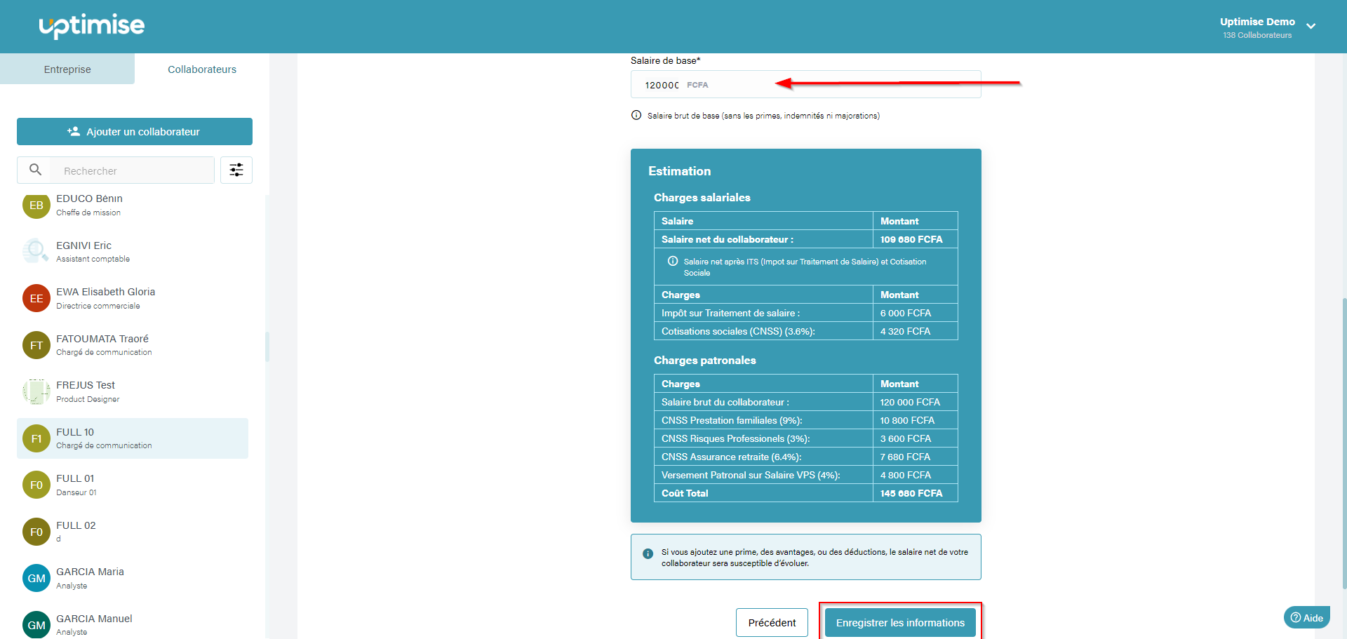 - Cliquez sur "Suivant" pour accéder à la page où vous pouvez modifier le salaire de base.
