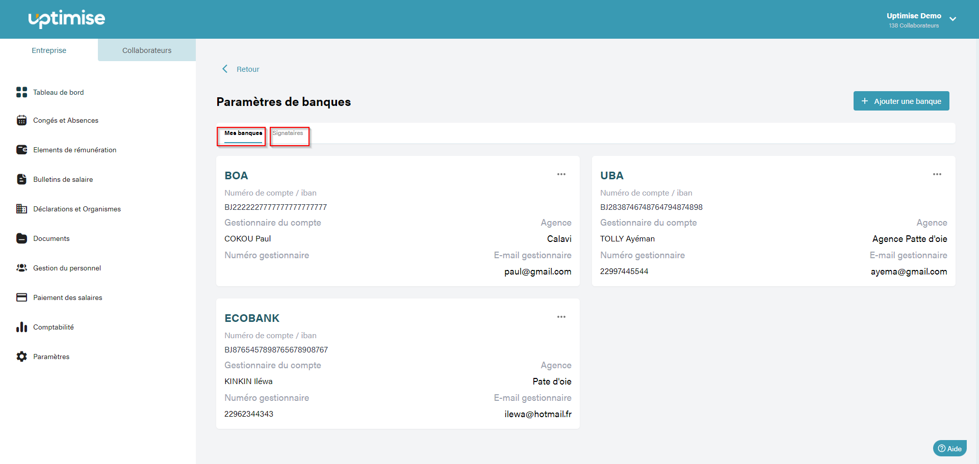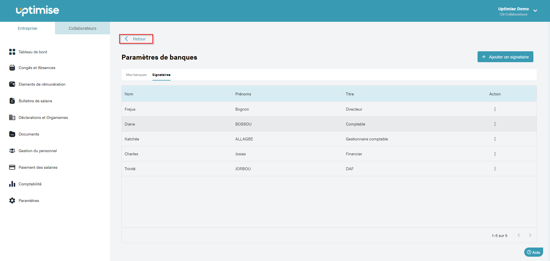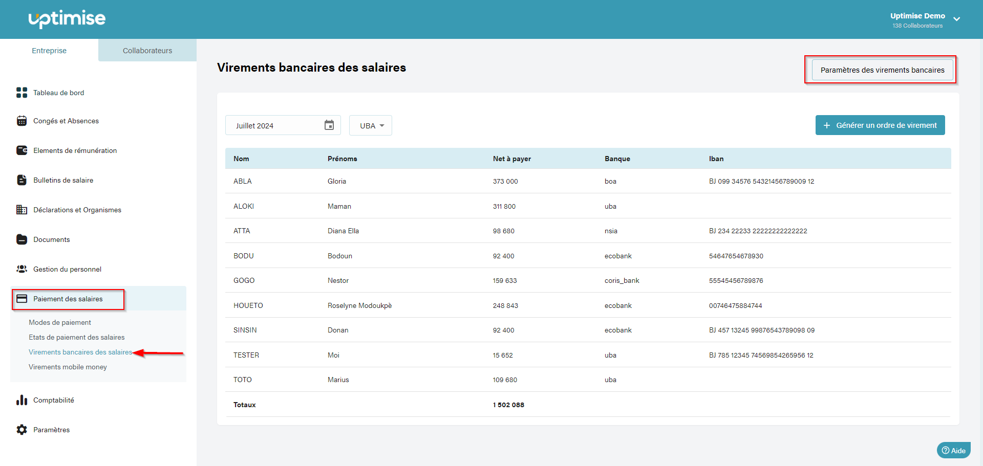 En suivant ces étapes, vous pouvez facilement générer un ordre de virement sur la plateforme Uptimise, assurant ainsi une gestion fluide et rapide des paiements de vos collaborateurs. N'oubliez pas de bien paramétrer vos banques et signataires lors de la première utilisation afin de garantir que toutes les informations nécessaires soient en place pour des virements sans erreur. Si vous rencontrez des difficultés, le service d'assistance Uptimise est à votre disposition pour vous accompagner.
