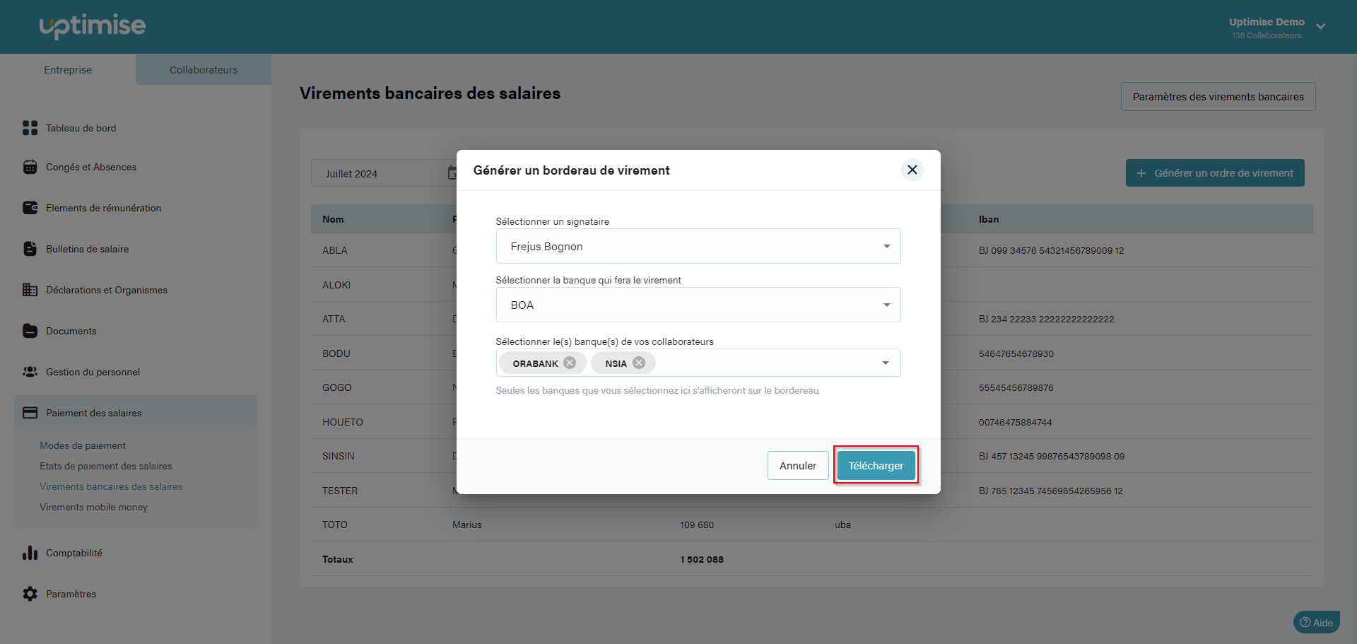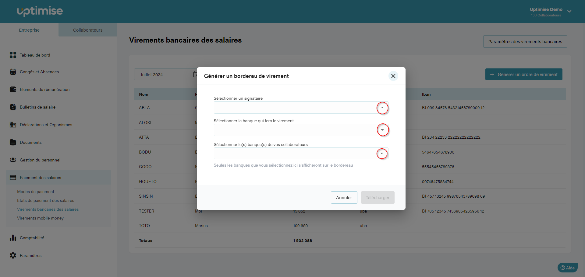 - Sélectionnez les banques de vos collaborateurs concernés par le virement.