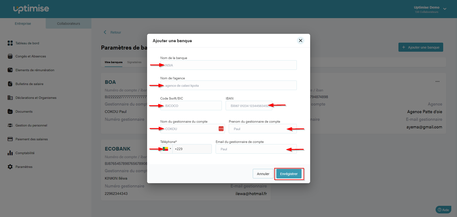 3. Cliquez sur "Enregistrer" pour valider l'ajout de la banque.